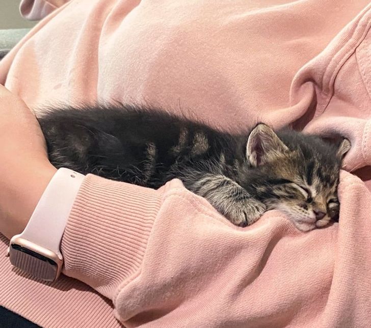 12- Esta gatita ha decidido esconderse dentro del suéter de su dueña, ya que le tiene mucho miedo al veterinario.