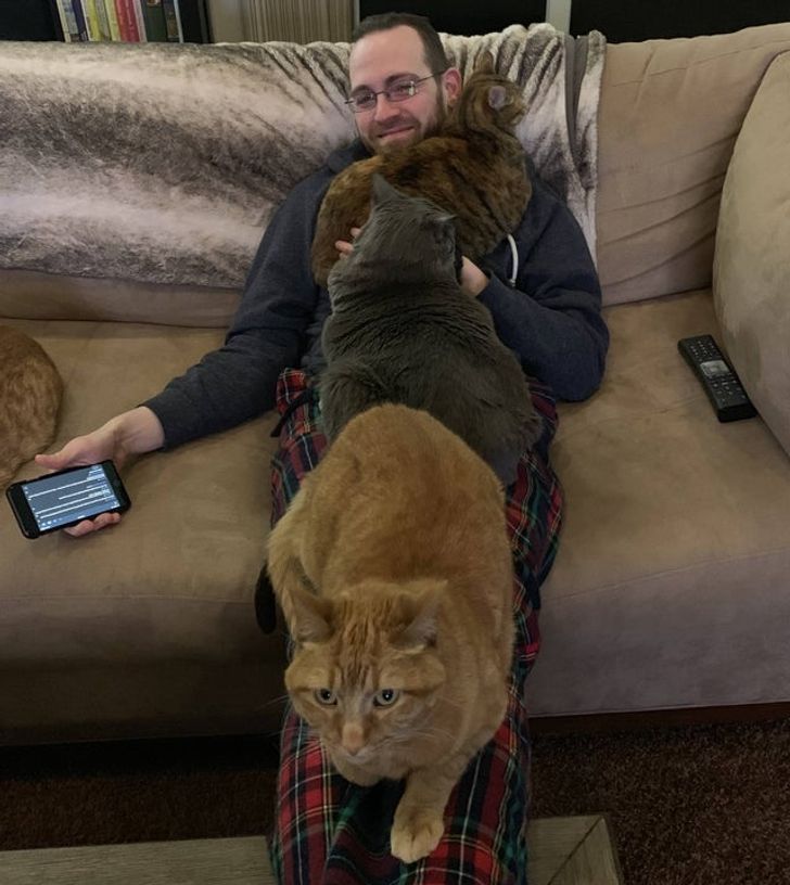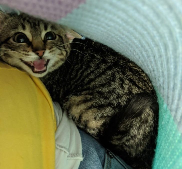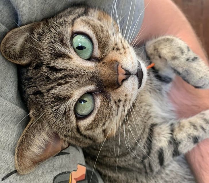 15- Esta es una de las primeras fotos tomadas por los dueños de este gato ha sido adoptado recientemente ¡Qué ternura!