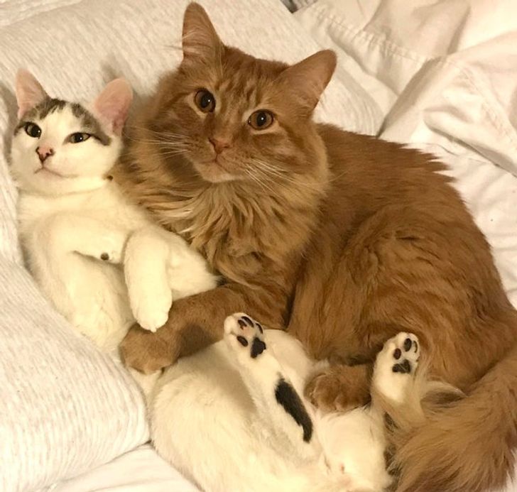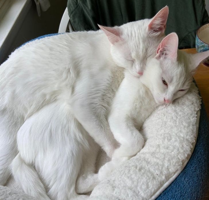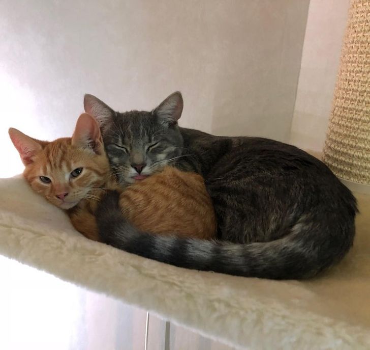 10- Esta pareja de gatos está descansando de una manera muy tierna ¡Qué viva el amor!