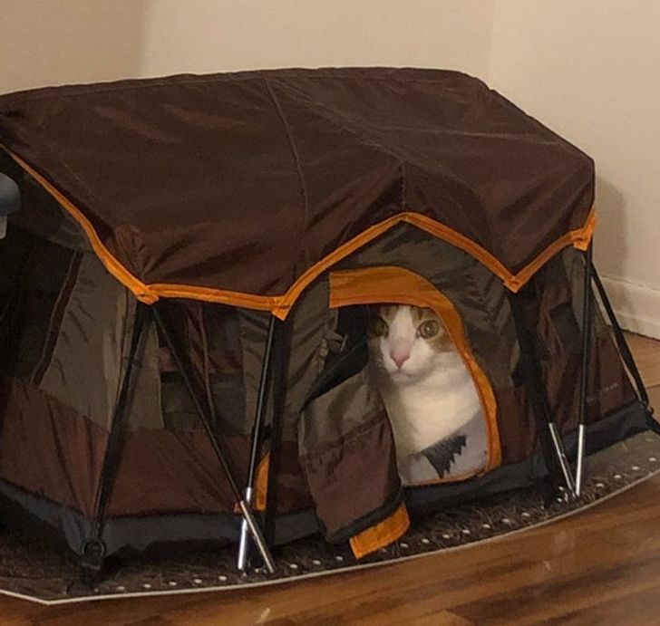 9- Sin duda alguna este gato está más que listo para acampar ¡De ahí no lo mueve nadie!