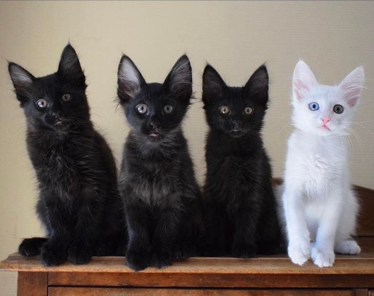 2- Aquí vemos a cuatro adorables gatitos, de los cuales uno solo parece ser que no encaja con los demás.