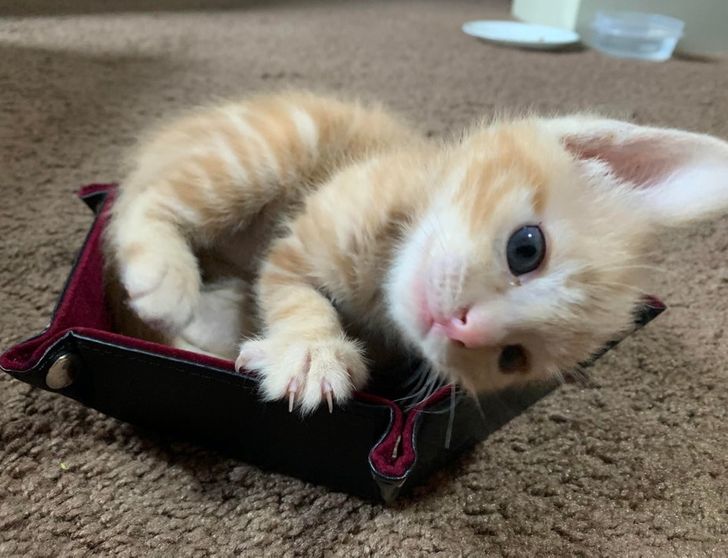8- Sadzi es un pequeño gatito que se siente muy cómodo en el tablero de dados, de hecho lo ha convertido en su lugar de descanso.